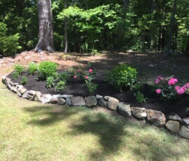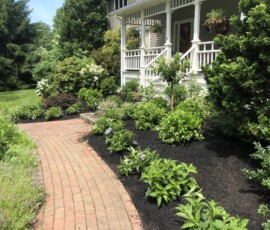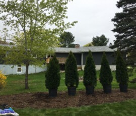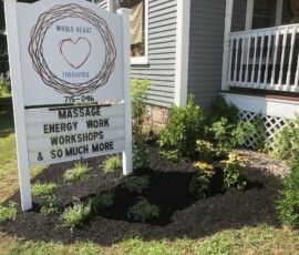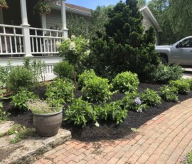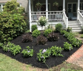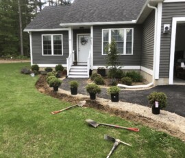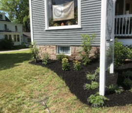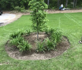 A planting and mulching project at a small business in Berwick, ME: