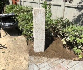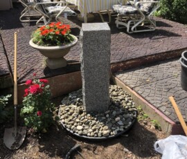 A large granite light post and granite fountain installed in Newington, NH: