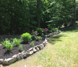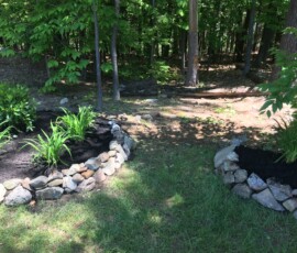 Berms were created and lined with rock before planting in Dover, NH: